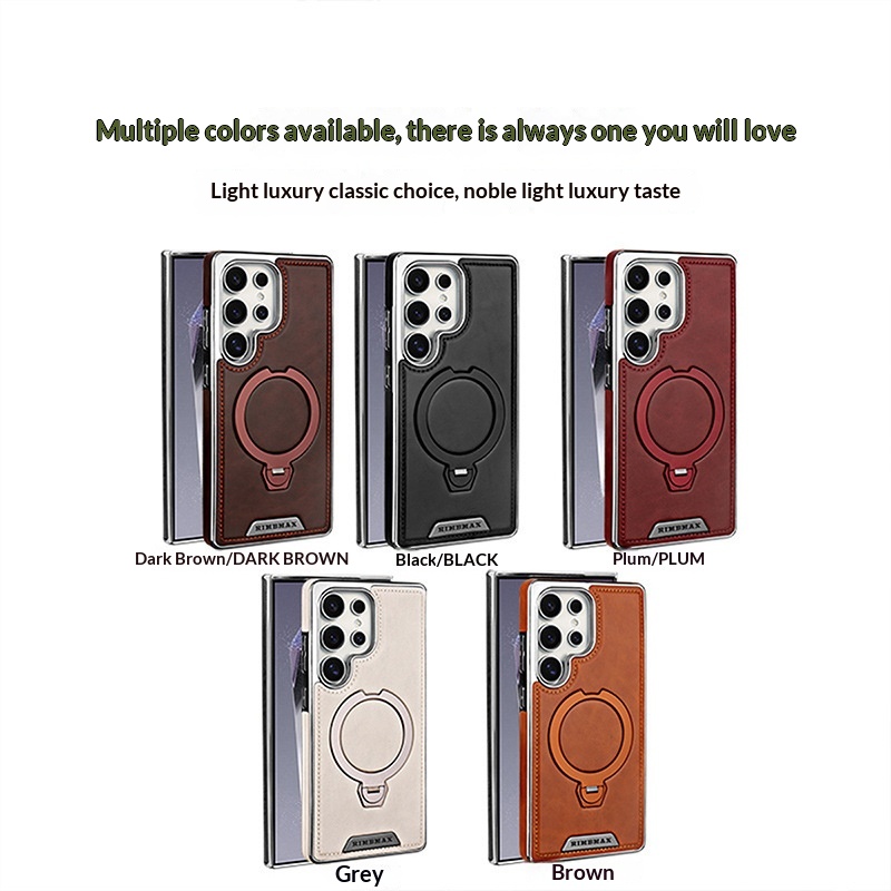 360-Degree Rotating Magnetic Suction Stand Leather-Textured Phone Case