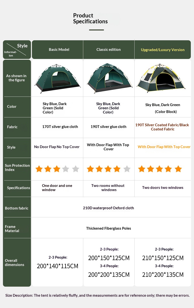 Outdoor Portable Fully Automatic Thickened Waterproof Tent